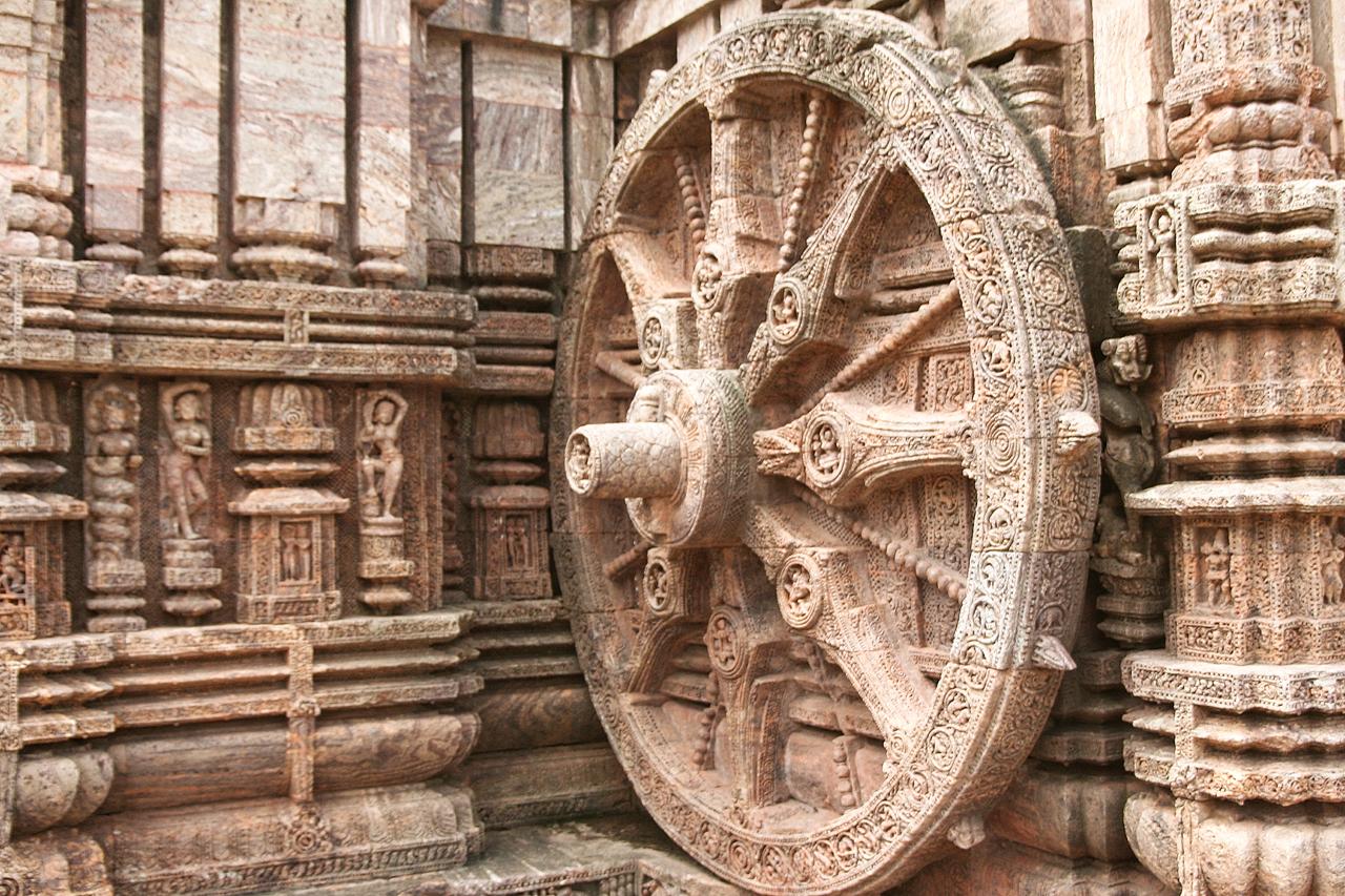 The wheels of the Konark Sun Temple in Odisha, India, are intricately carved stone sundials from the 13th century, symbolizing...